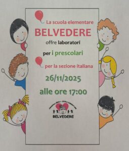 Mercoledì 22 ottobre 2025 si terrà la Giornata delle porte aperte secondo il seguente orario: 1a - 4a alle ore 17 5a - 8a 17:45 - 18:15 Riunione dei genitori 18:15 - 19:15 Informazioni colletive U srijedu 22. listopada 2025. održat će se Dan otvorenih vrata u 17 sati...
